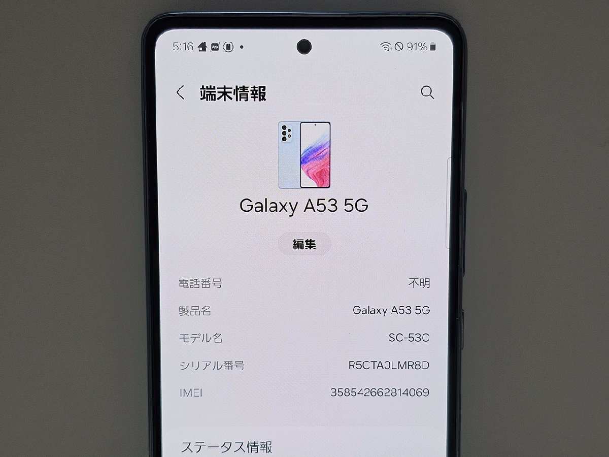 ★【66223WM】 完動品 docomo SC-53C SAMSUNG Galaxy A53 5G オーサムブルー 1円 ! 1スタ !
