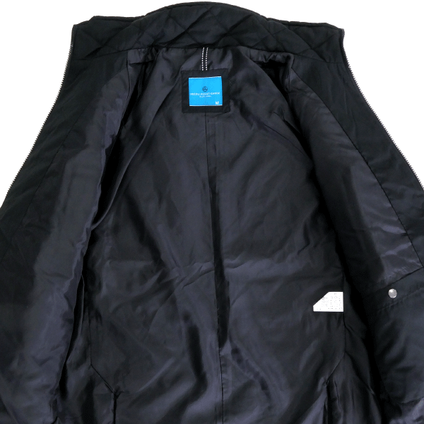 | 新品 未使用 紙タグあり Mサイズ 胸囲88~96 身長165~175 ※商品に記載されたサイズ・寸法です※ 肩幅は、測定不可 ゆき丈85cm(首真後ろ~袖先) 身幅55cm 袖下丈49cm(脇下~袖先) 着丈72cm 表地:ポリエステル100% 中わた:ポリエステル100% 裏地:ポリエステル100% ブラック |