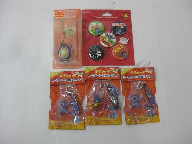 中古品 ディズニー スティッチ 缶バッジ サーフボード 携帯ストラップ 他 5点 グッズセット