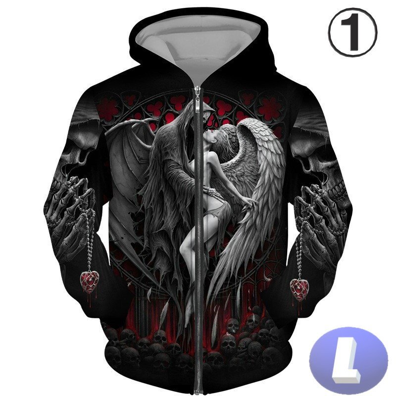 フード付き ドクロパーカー ジップアップ カラー1 L トレーナー アウター 防寒 n717