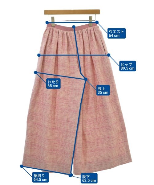 | ウエスト:64cm,裾周り:64.5cm,ヒップ:89.5cm,わたり:65cm,股上:35cm,股下:62.5cm |