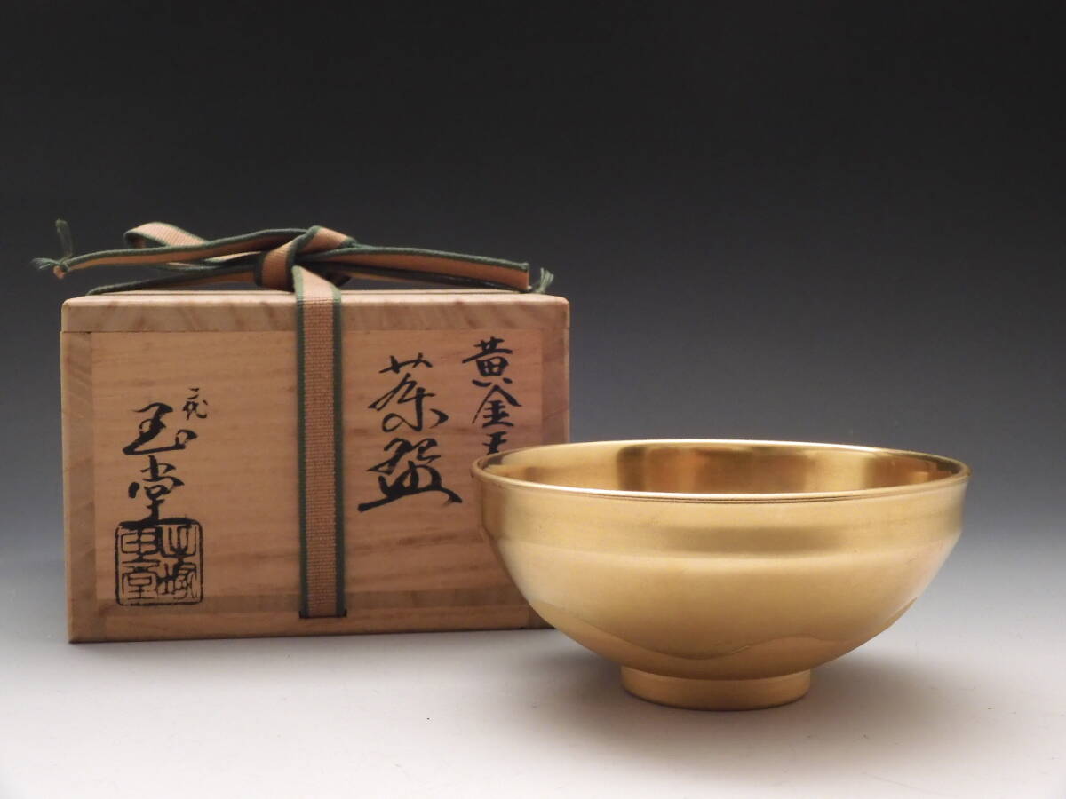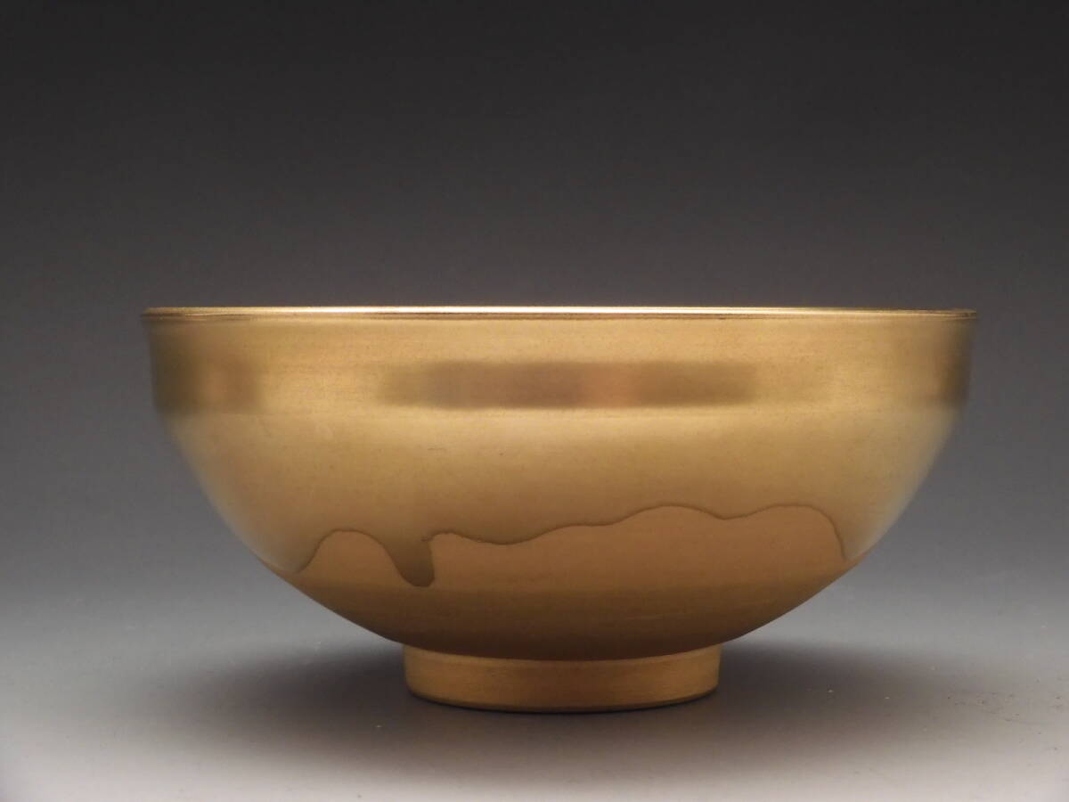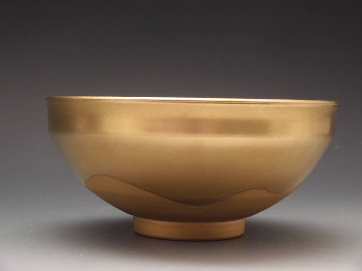 | ◇桔◇手塚 玉堂 造 黄金 天目 茶碗 茶道具 共布 共箱 無傷 E50◇ |