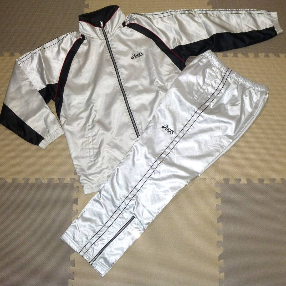 ★ASICS アシックス ウィンドブレーカー上下セット Lサイズ シルバー/ブラック★ スポーツ 部活 学生
