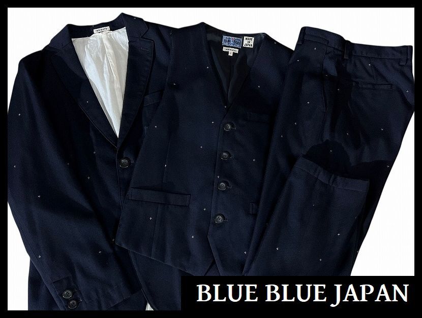 送料無料 定価88,000円 美品 19AW BLUE BLUE JAPAN ブルーブルージャパン スタリーナイト ウール ジャガード 3ピース セットアップ 紺