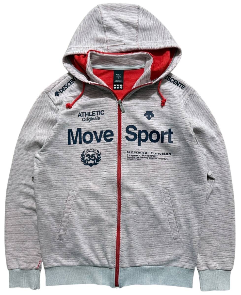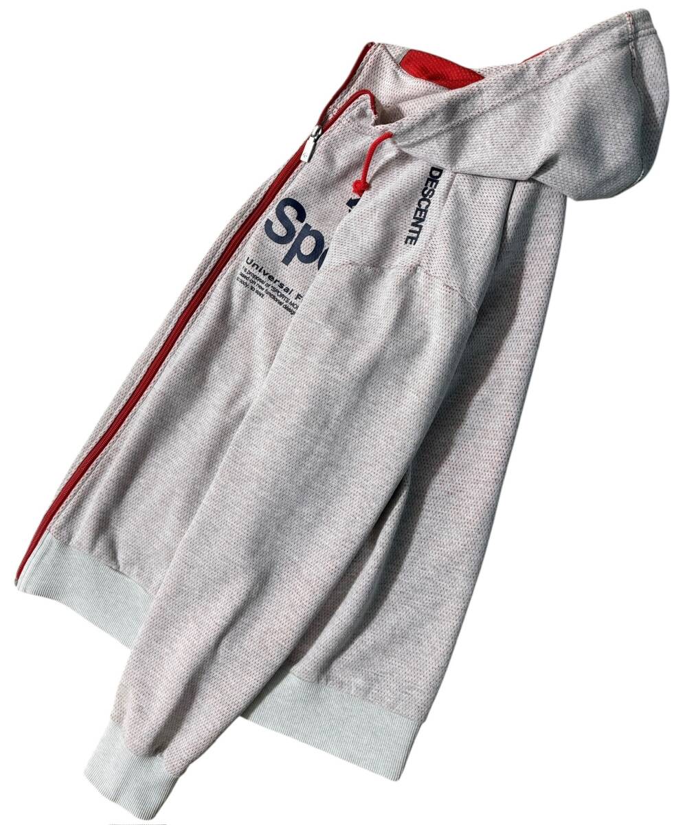 DESCENTE Move Sport デサント ムーブスポーツ ドットメッシュ スウェットパーカ フーデッドジャケット O グレー/レッド