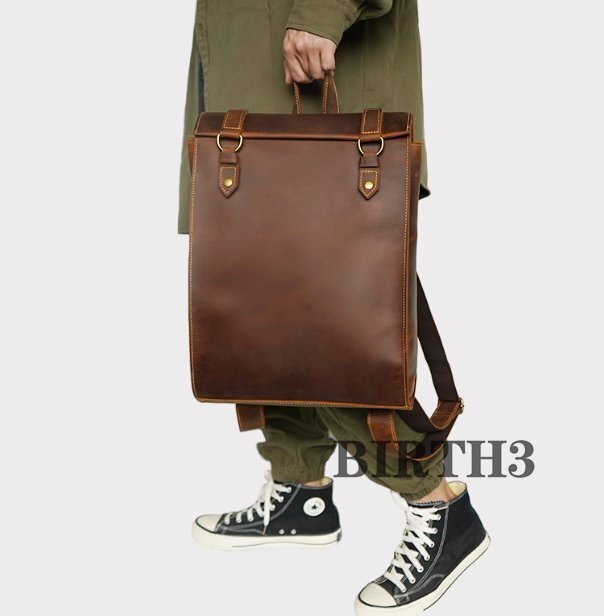 本革ランドセル牛革パソコンバッグ狂った馬皮リュックサック