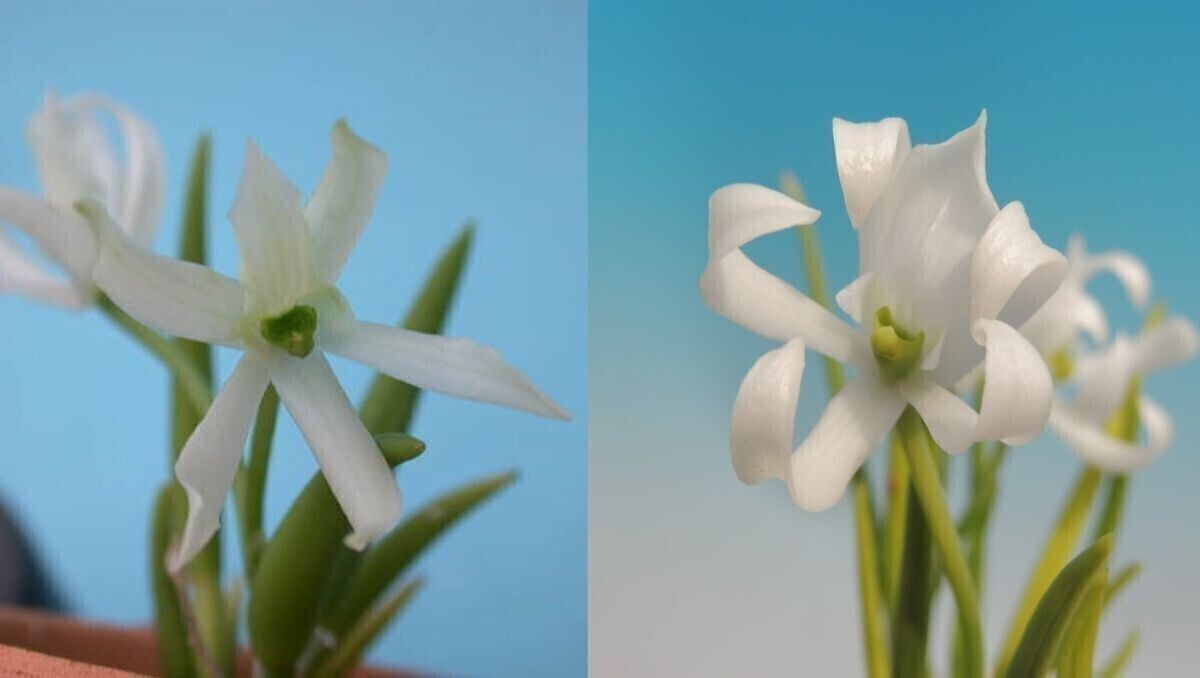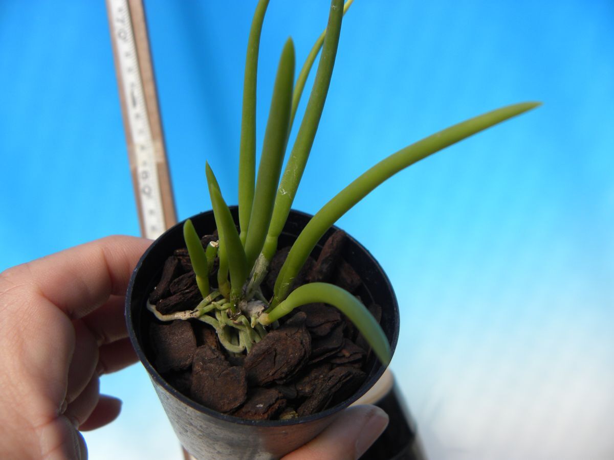 Leptotes bicolor f.alba x sib.(`T.Hashimoto' HCC/JOS x `Ohyama') 当園実生 未開花株 です。