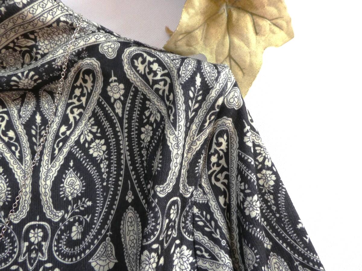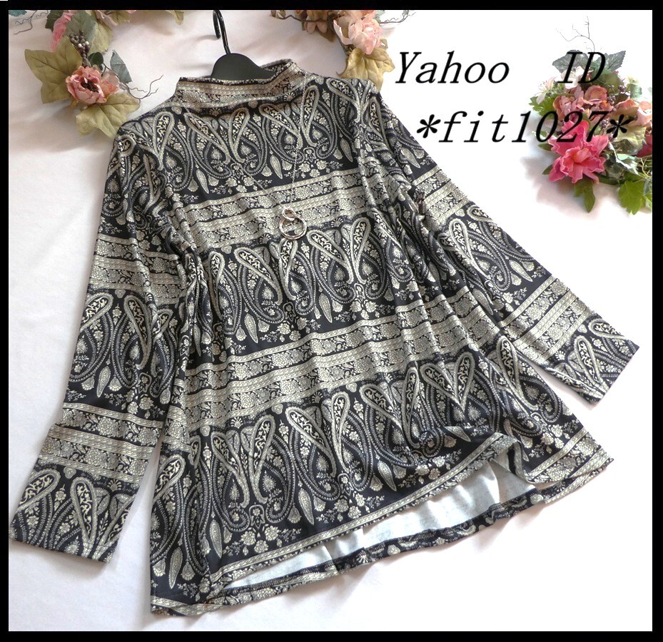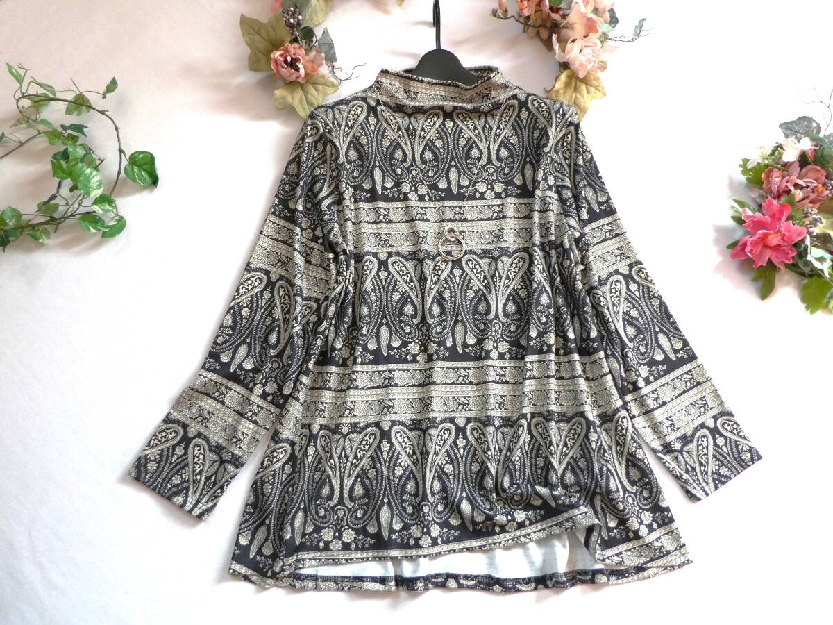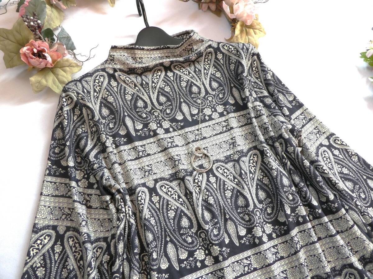 LL~3L【新品】柔らかなスムースタッチ素材☆ きれいなAライン♪ペーズリー柄★ボトルネックチュニック・モノトーン◆fit1027◆