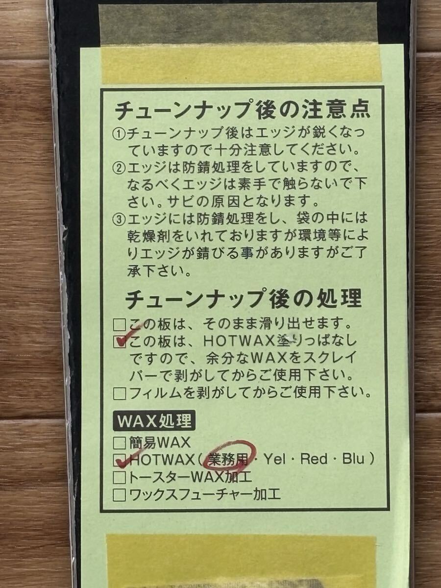 ホットワックス施工済みのため、滑走性は良好と思います。