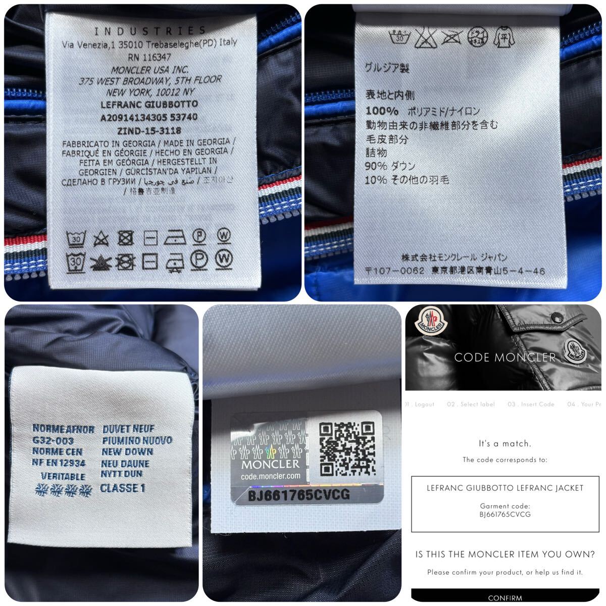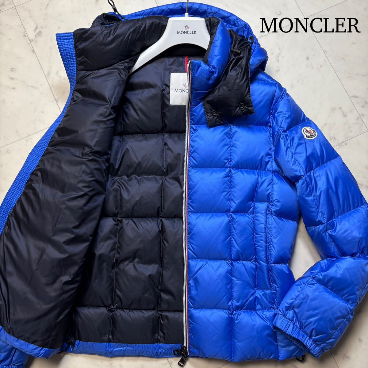 美品★ MONCLER モンクレール LEFRANC キルティング ダウンジャケット パーカー 着脱フード ブルゾン アウター Mサイズ ブルー 青 メンズ