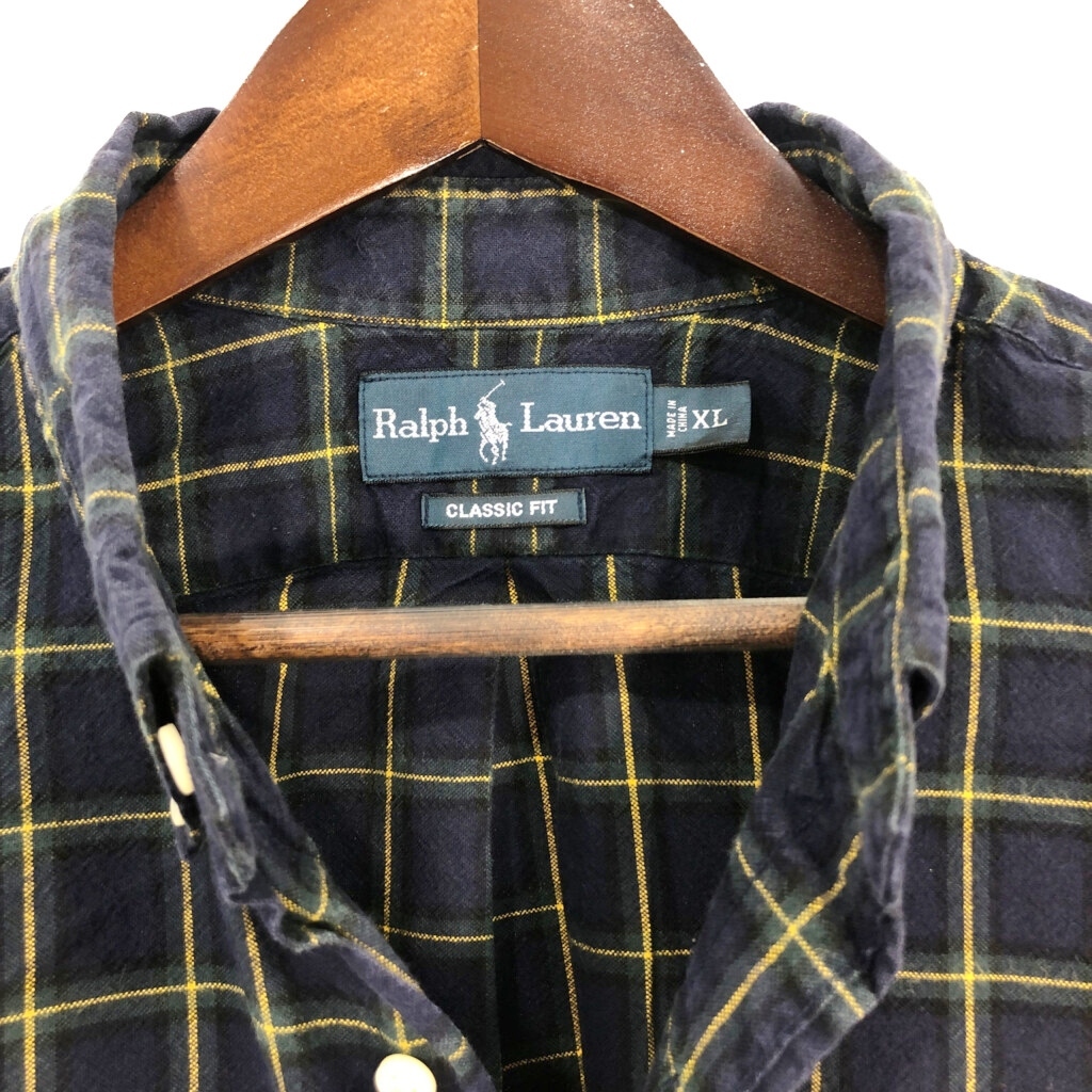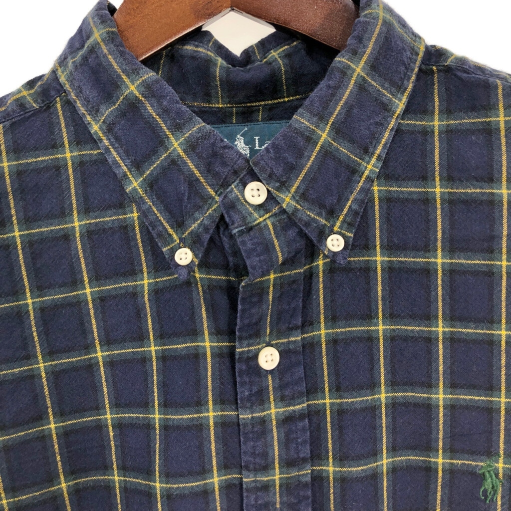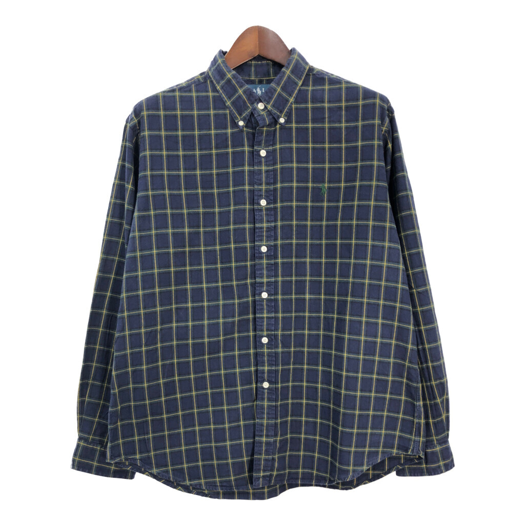 | 【商品管理番号】 S1042 【ブランド】 RALPH LAUREN/ラルフローレン 【サイズ】 XL 【実寸サイズ】 肩幅:約52cm 着丈:約79cm 身幅:約68cm 袖丈:約64cm 【主な素材】 表地 : コットン 【色】 ネイビー 【仕様】 90年代 ボタンダウン チェック 【状態】 汚れ:襟、首元、腹部 特記事項:色褪せ | |||
