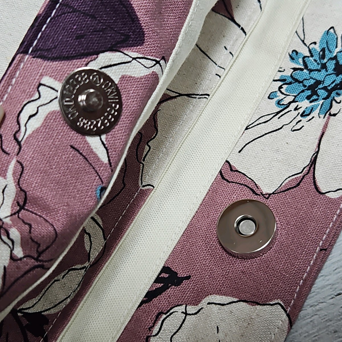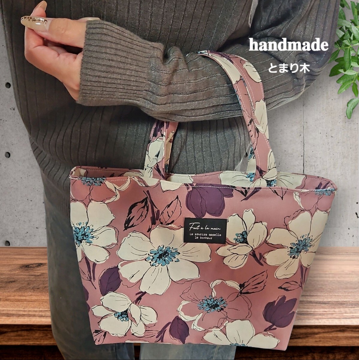 ◆北欧風の大きな花柄がとても可愛く、持っているだけで気分が上がりそうな素敵なミニトートバッグに仕上がりました。