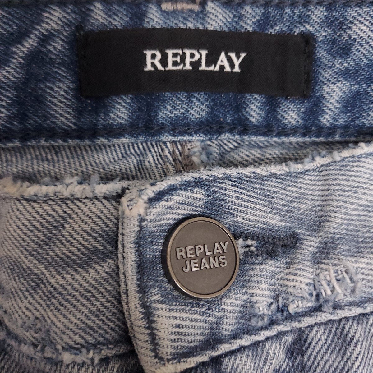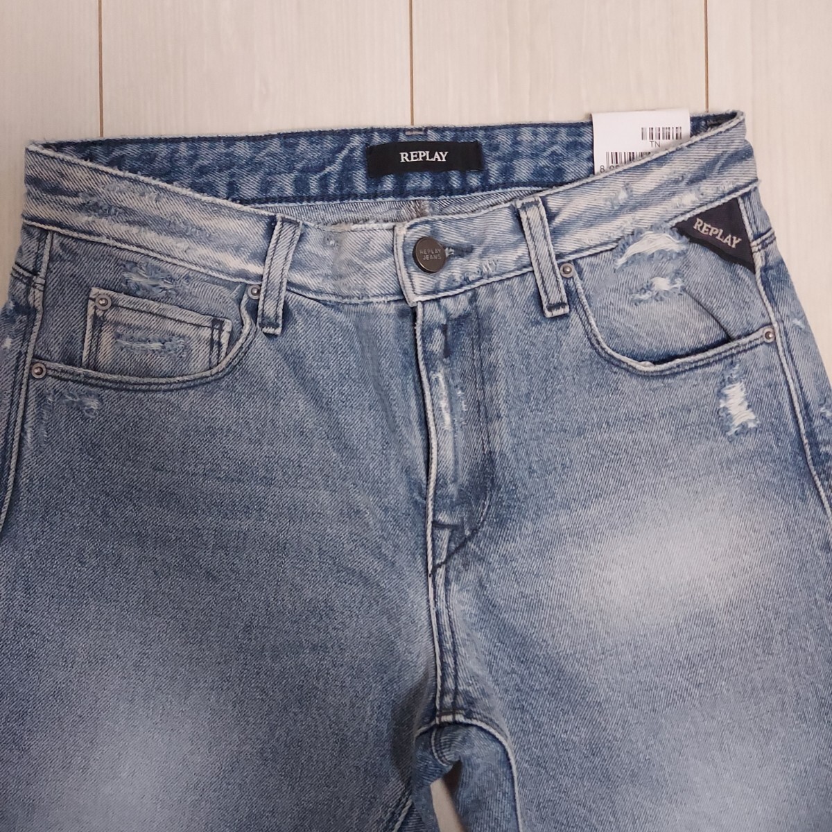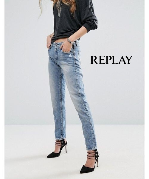 リプレイのMomジーンズ、ノンストレッチデニム、ハイライズウエスト、隠しフライ、機能的なポケット、スリムテーパードレッグ、足首丈、リラックスフィット
