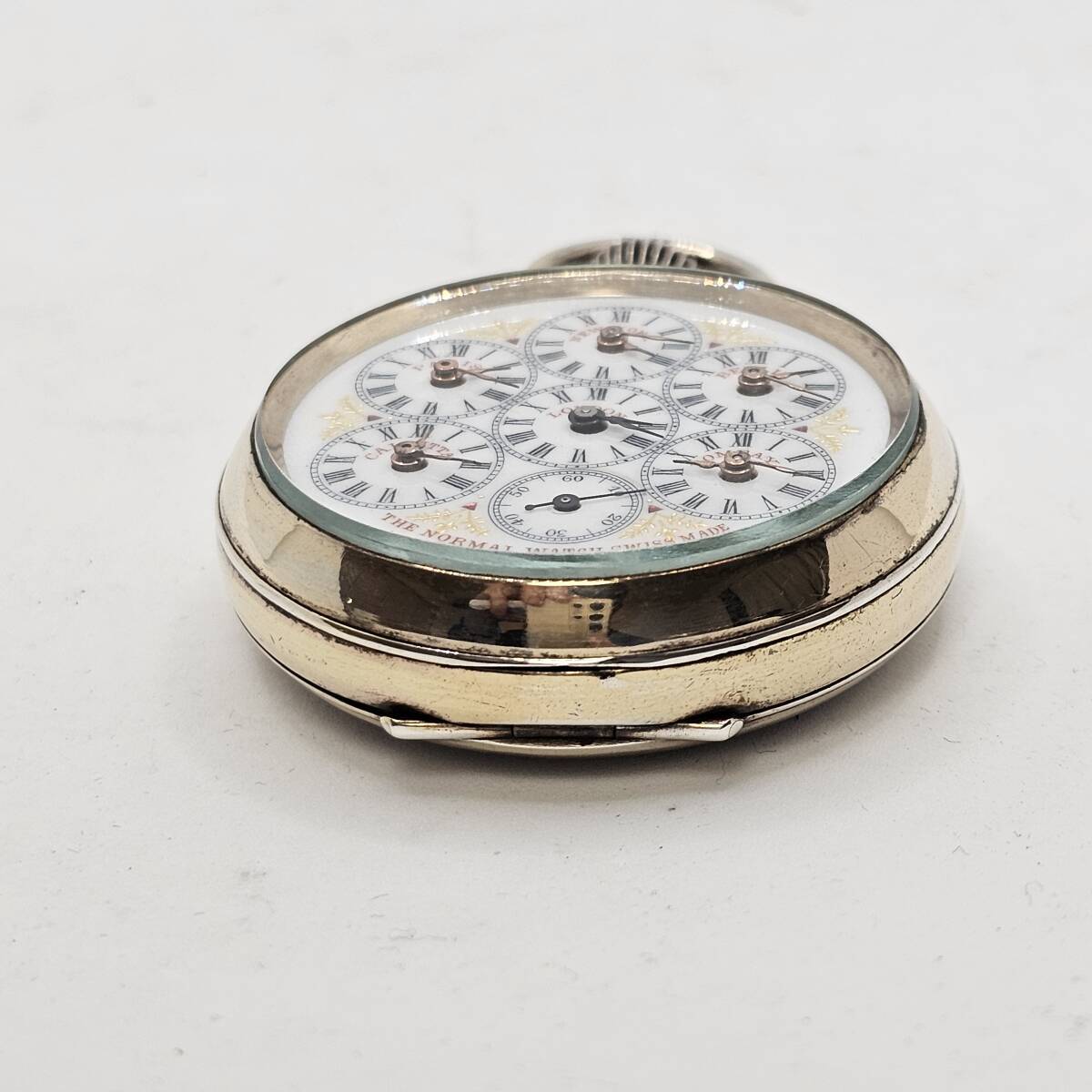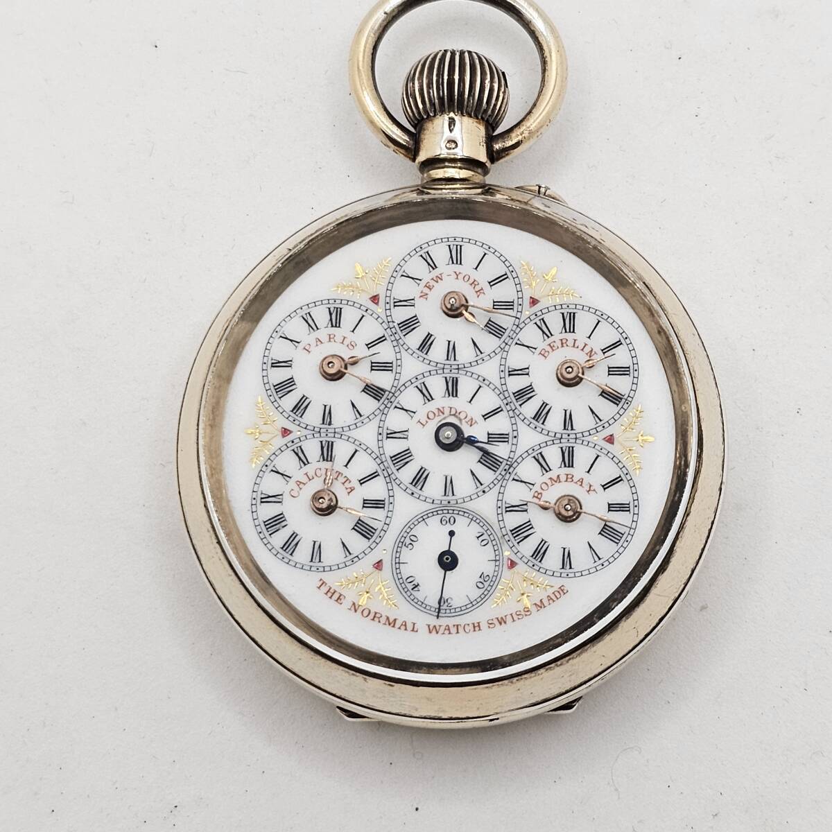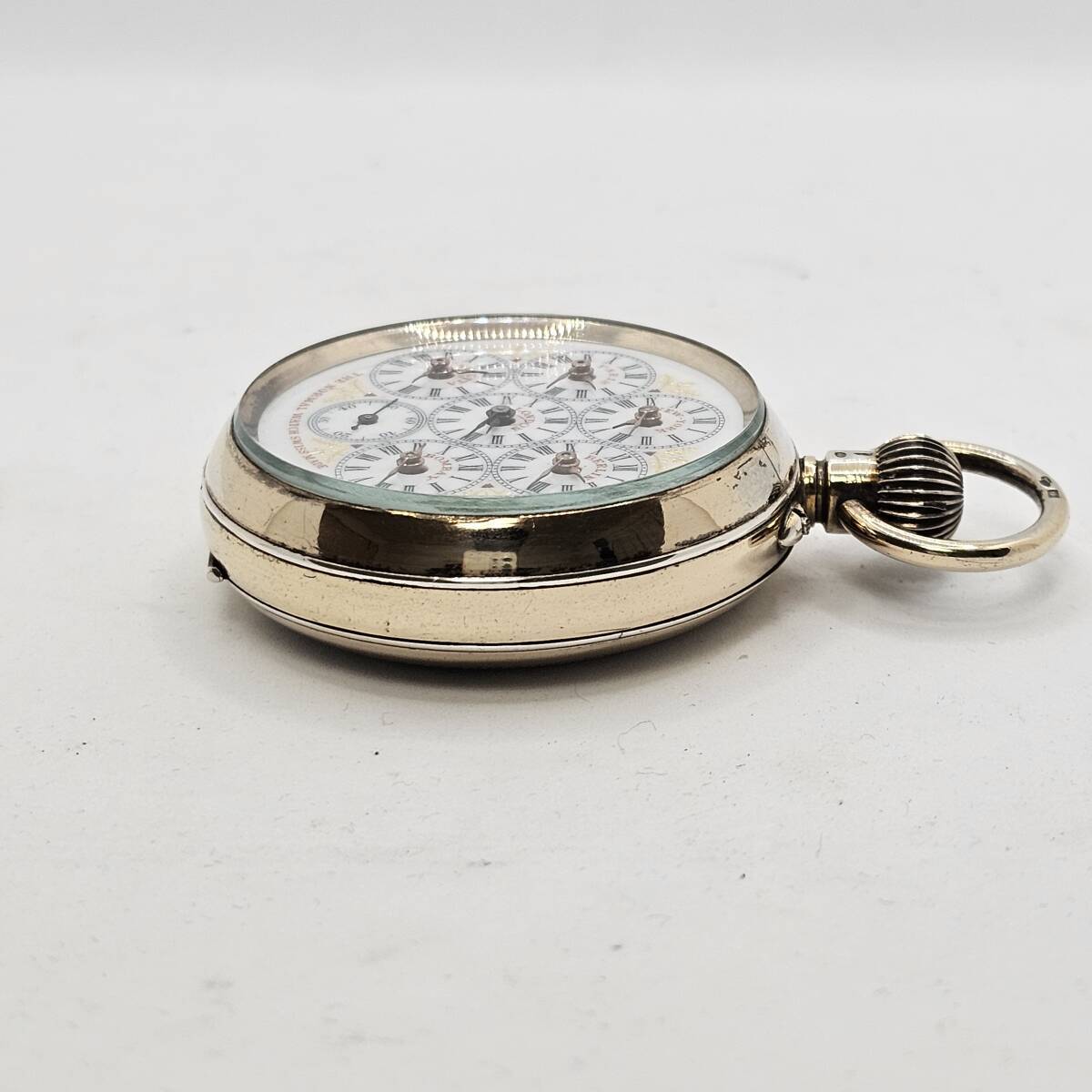 こちらは、スイス製のクラシックな**手巻き式世界時計**です。