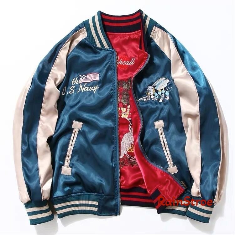 スカジャン 男女兼用 フライトジャケット メンズ 野球服 両面着 刺繍 ブルゾン リバーシブル ジャンパー 長袖 レディース アウター 春秋冬 ライトアウター ミリタリージャケット