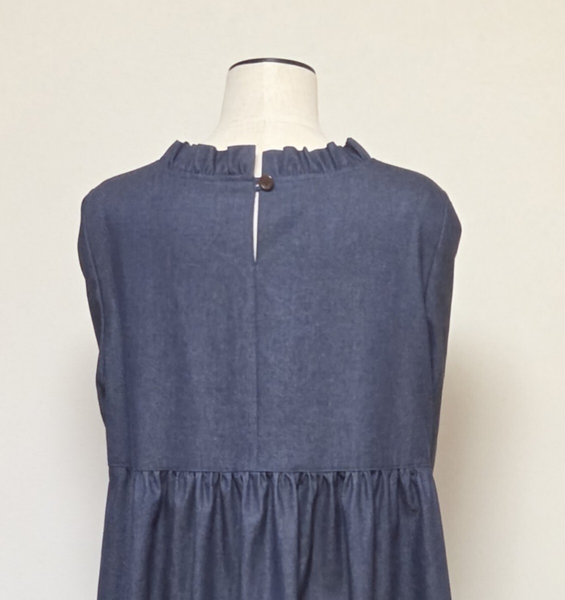 | 商品説明 ☆ - - - ご覧頂き有難うございます。- - - ☆ ****************** 画像は 明日掲載させて頂きます。 ****************** 5オンスのデニム地を使って 切り替え入りたっぷりギャザーの ワンピースを作りました。 襟をフリルにして後ろ襟ぐりに付けた 共布のループで釦を留めます。 両脇にシームポケットを付けました。 たっぷりギャザーが可愛いでしょ(*'▽') いかがでしょうか? 【サイズ】 全て平置きでの採寸となっております。 着丈:約120㎝ (後ろ中心の衿ぐりから裾まで) 肩幅:約40㎝ 身幅:約50㎝ (袖ぐりの脇縫い位置) 裾幅:約115㎝ 袖丈:約52㎝ 袖口:約14㎝ 多少の誤差はお許し下さいませm(__)m 【素材】 綿:100% ご不明な点等が御座いましたら お気軽にご質問下さいませ。 発送方法 レターパックプラス 支払方法 かんたん決済 コメント 型崩れせずに長く気持ちよく着て頂きたくて 1枚づつ裁断して丁寧に縫っております。 他にも出品しておりますので 良かったら是非覘いてみて下さいませ。 |