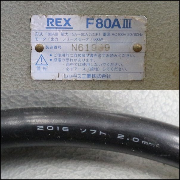 中古動作品 REX/レッキス F80AⅢ F80A3 ねじ切り機 パイプマシン 2016年製 引取り限定(山形県鶴岡市)