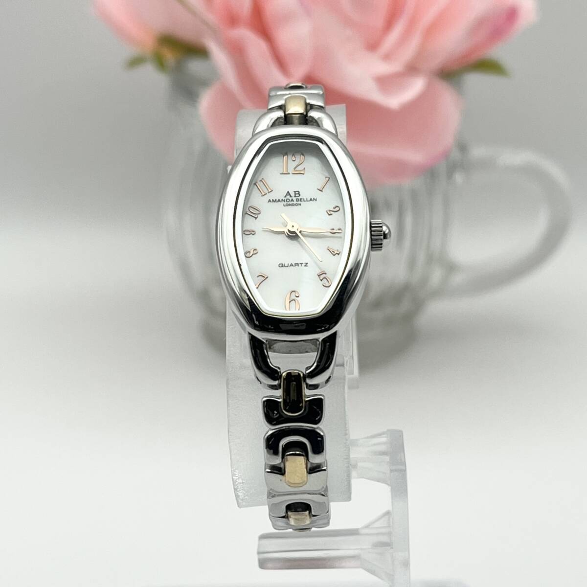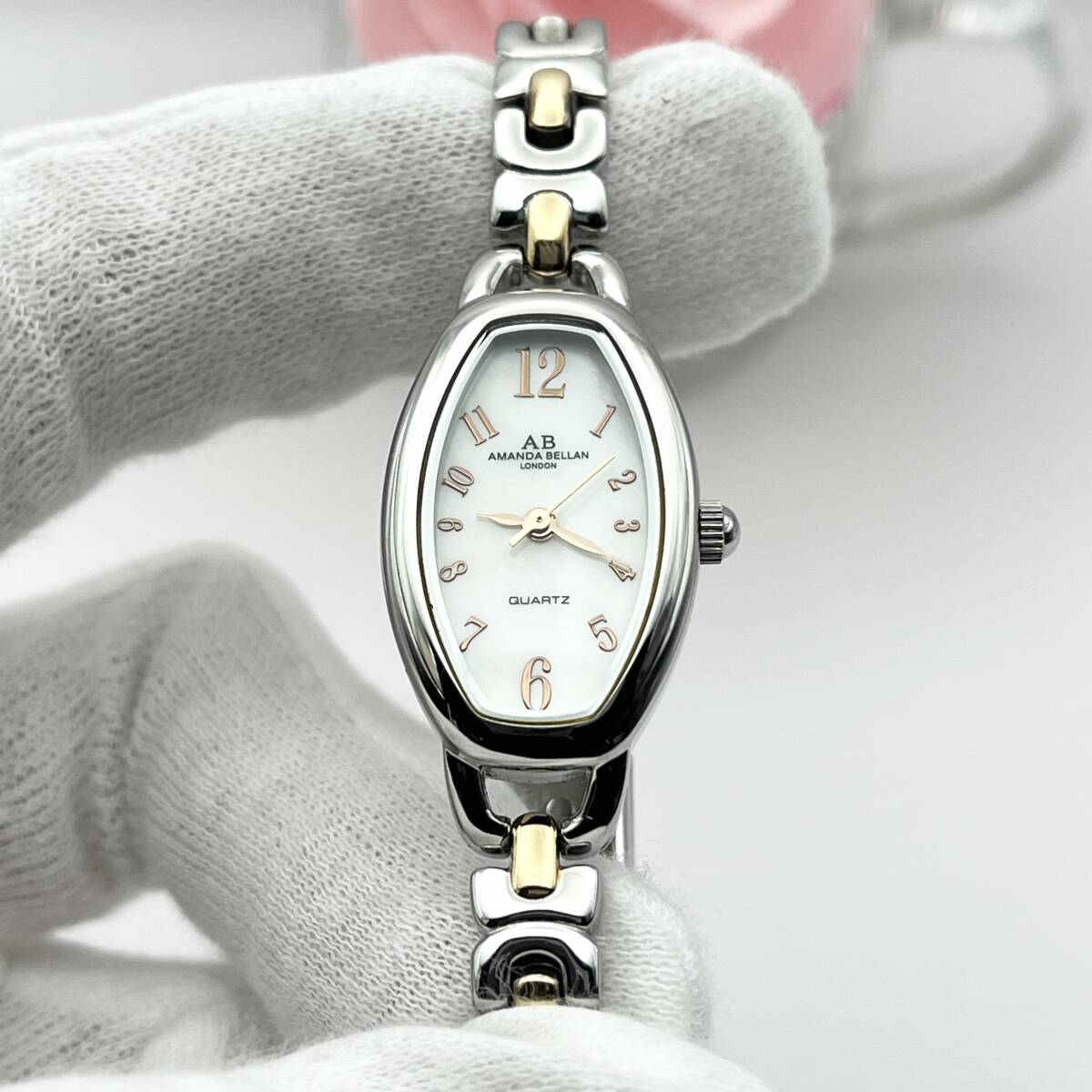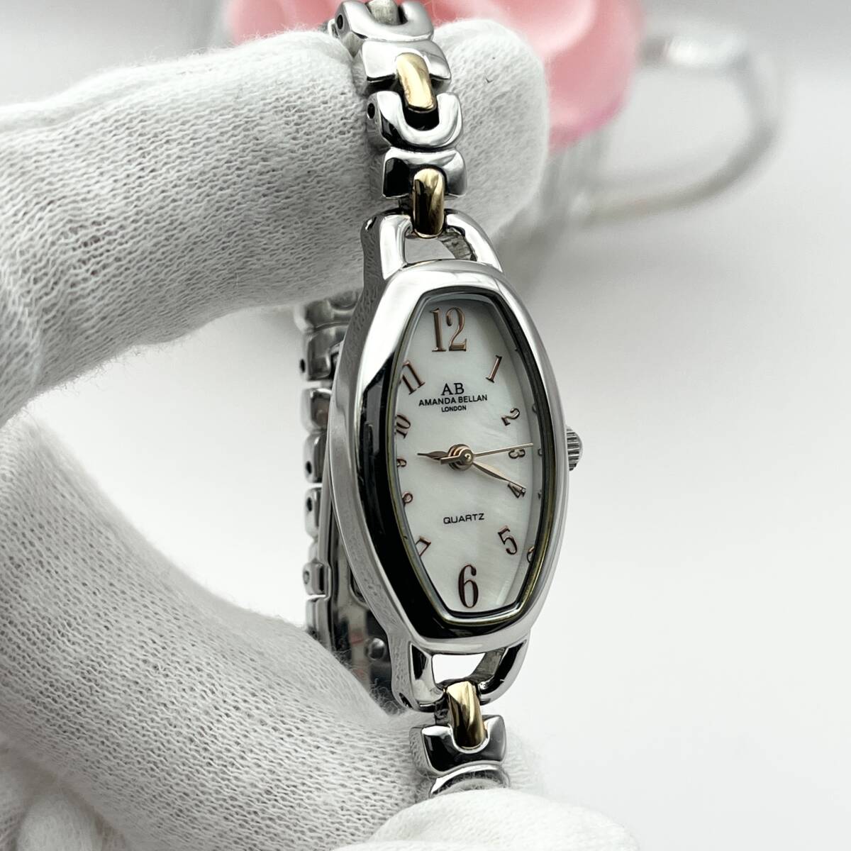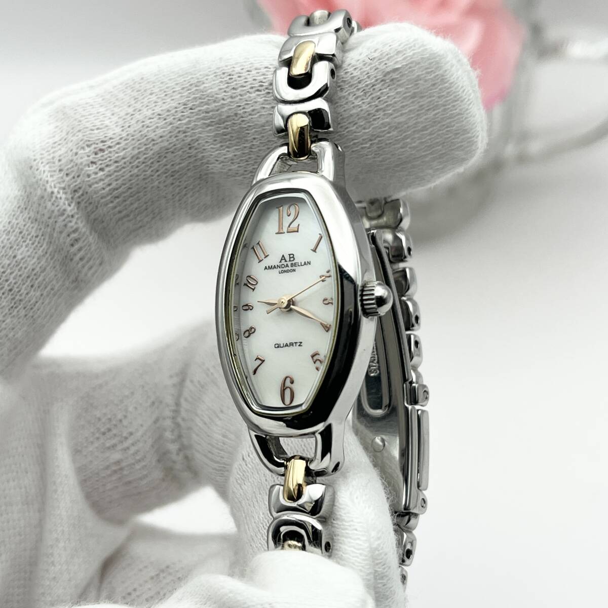 《稼働品》AMANDA BELLAN★アマンダベラン★シェル文字盤★クォーツ 腕時計★トノー型★コンビカラー★レディース★管理744h
