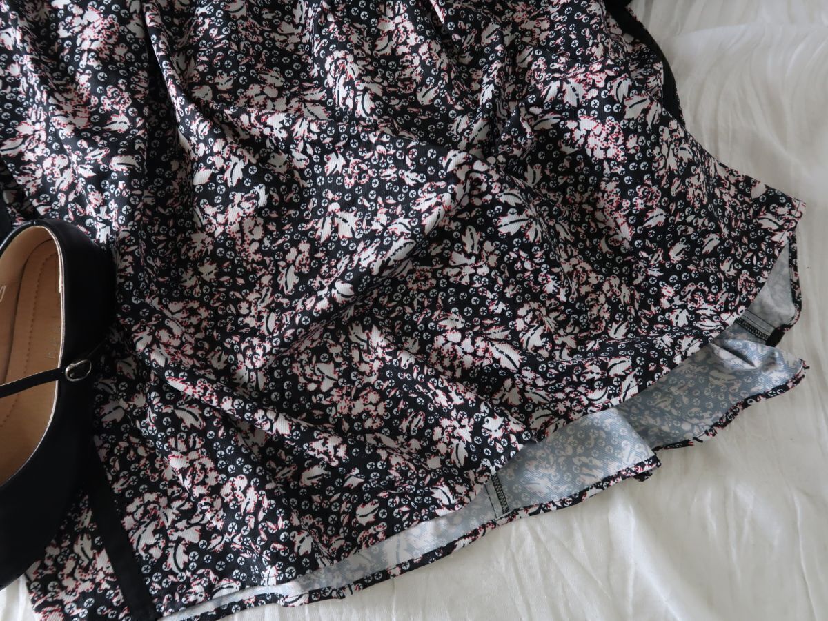 ウエスト後ろのリブがアクセントになり、メリハリのある女性らしいシルエットになっています。