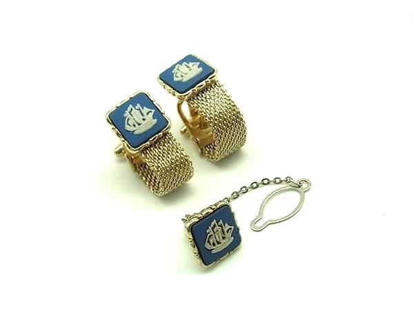 WEDGWOOD ウェッジウッド ジャスパー カメオ タイタック タイピン カフリンクス カフスボタン 2点セット シルバー系×ブルー系 DJ4517