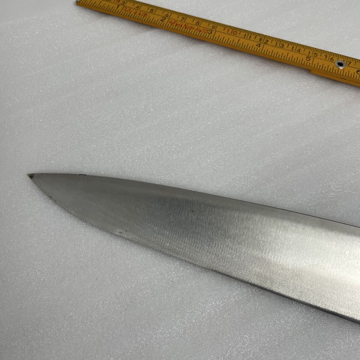 未使用品ですが長期保管品のため汚れ、サビなどが見られます。また根元(あご)部分が直角ではなく角が落ちたようになっています。