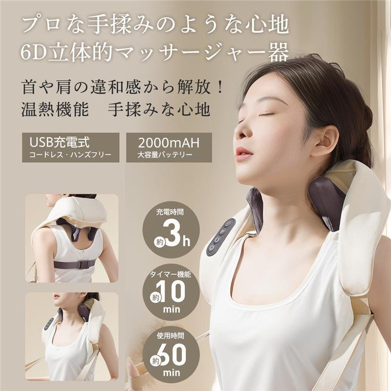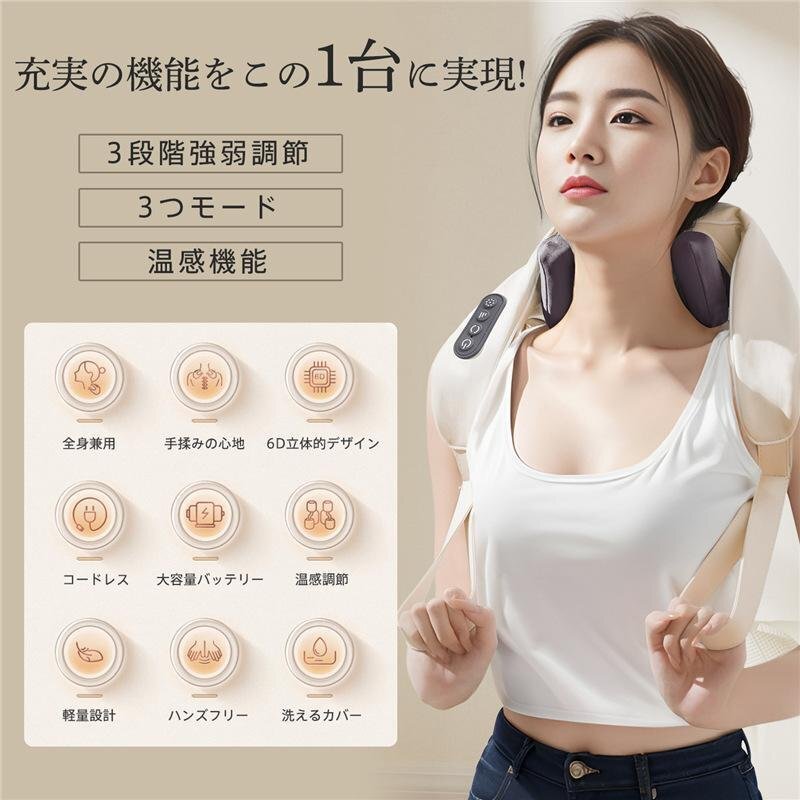 マッサージ器 ネックマッサージャー 肩こり 首マッサージ器 全身 多機能 コードレス ネックウォーマー 揉み 強弱調節 敬老の日 lhw021
