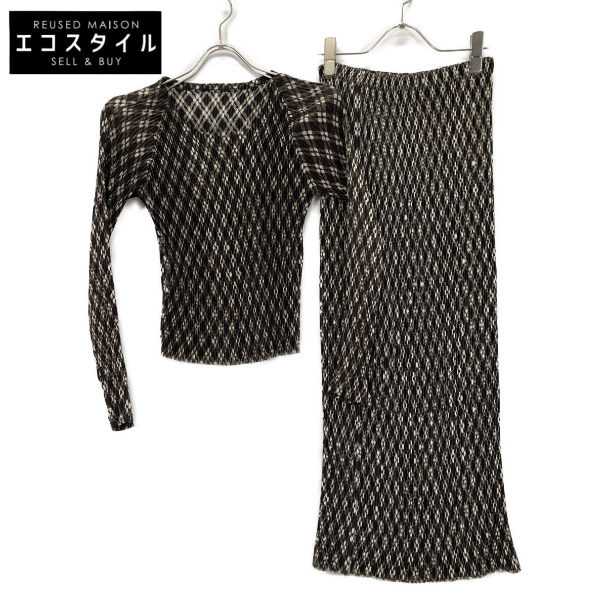 1円 ISSEY MIYAKE イッセイミヤケ ブラウン チェック柄 IM82-FJ644/FG613 トップス/スカート プリーツセットアップ スーツ M/S
