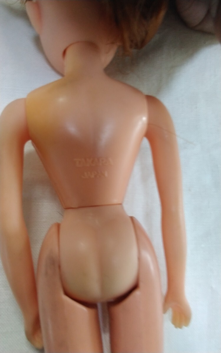 タカラ、日本製リカちゃん人形3代目のジャンク品です。足の関節が固定で曲がる「クリック足」の個体です(画像6、7)ボディ変色などありますので現状ジャンク品とさせていただきます。その他リカちゃんやジェニーちゃんなど着せ替え人形多数出品していますのでよろしければご覧になってください。
