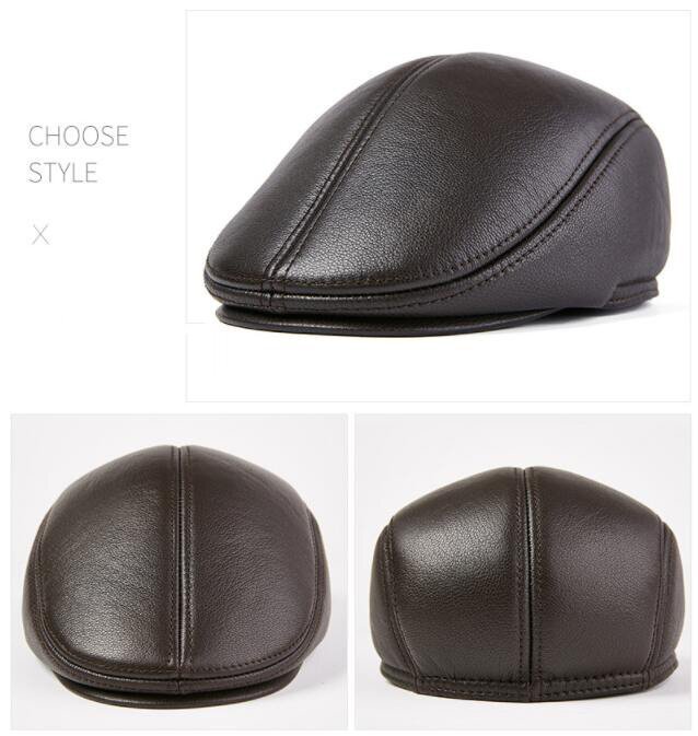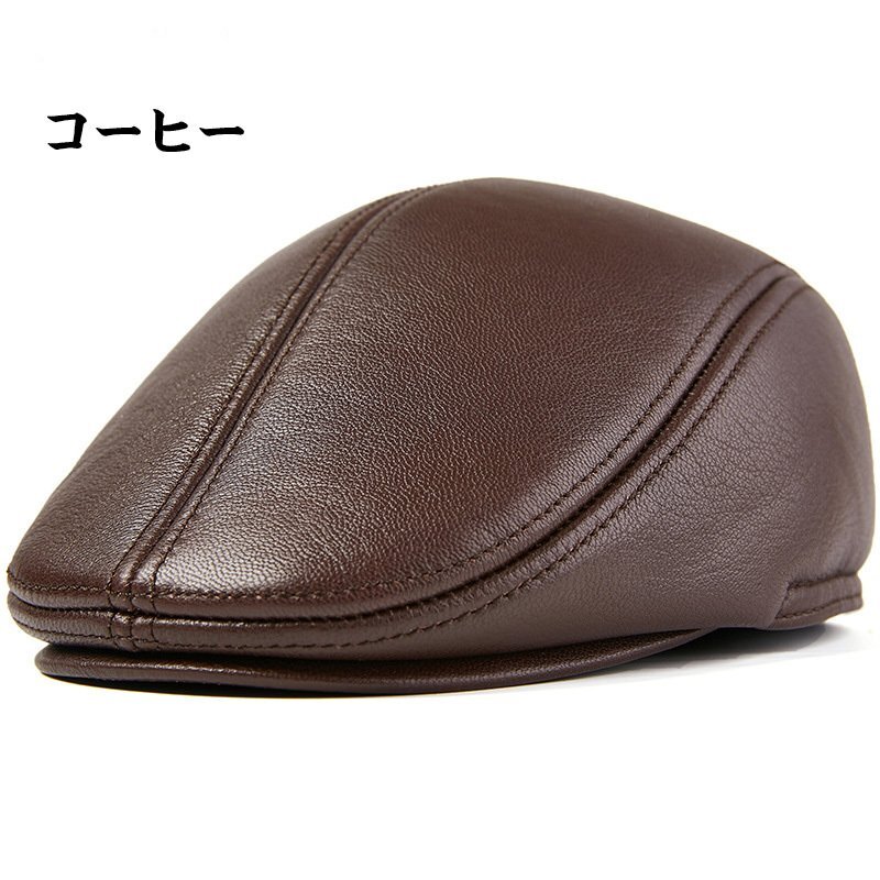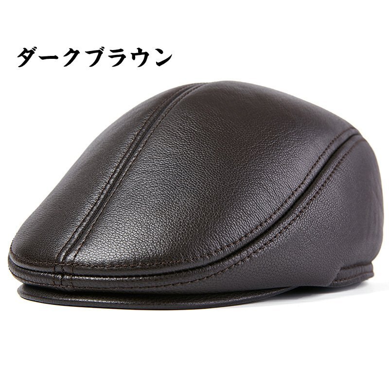 メンズ 帽子 羊革 ハンチング帽 ベレー帽 キャップ 耳あて付き防寒帽子 防寒防風 カジュアル 耳覆い帽子 風防止 L/XL/2XL☆ダークブラウン