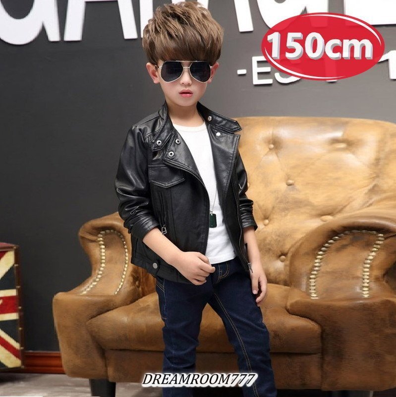 kids boy 2way ライダースジャケット 【ブラック 150cm】 韓国子供服 レザー ハード ライトアウター K-265