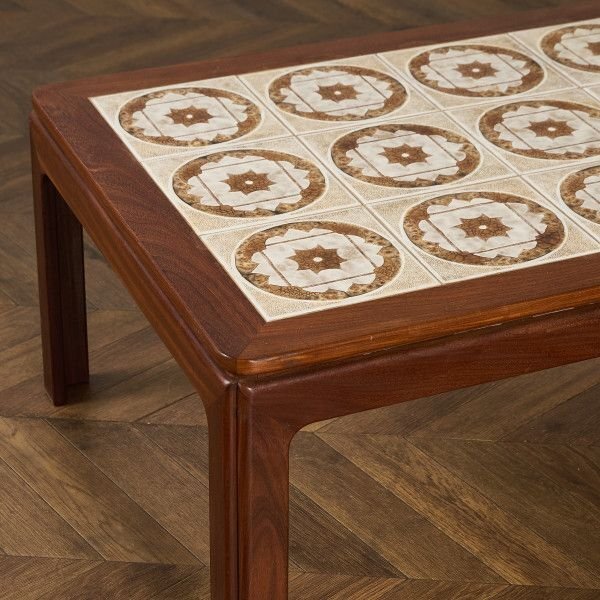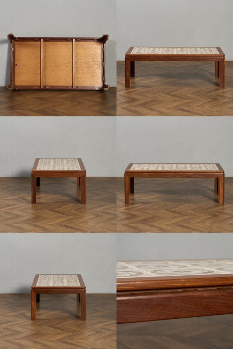 英国ミッドセンチュリーを代表するブランド G-Plan(ジープラン) による、タイルトップ コーヒーテーブルです。 珍しいセラミックタイルトップのモデルです。美しい幾何学模様や、特徴的なフレームデザインが印象的。センターテーブル、サイドテーブル、ディスプレイ台等シーンに合わせてフレキシブルにお使いいただけます。 |