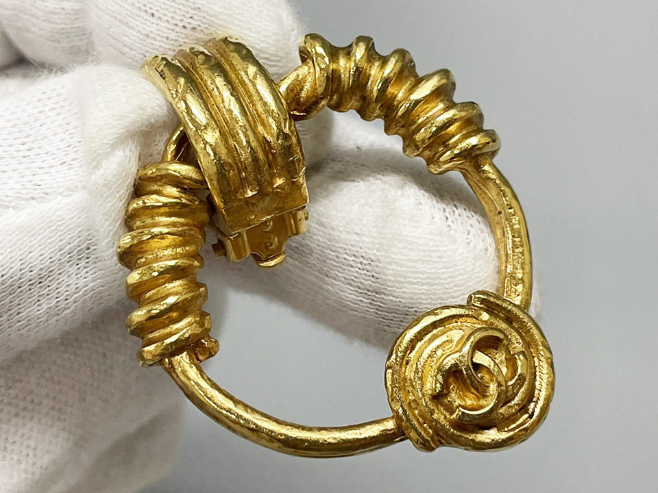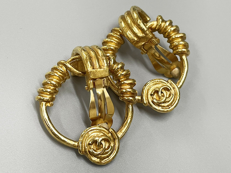 CHANEL シャネル 美品 ココマーク イヤリング クリップ 94P GP ゴールド アクセサリー ヴィンテージ 箱付