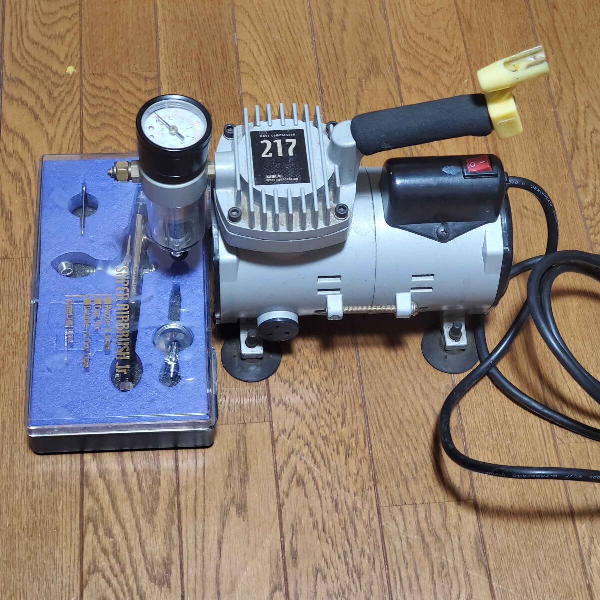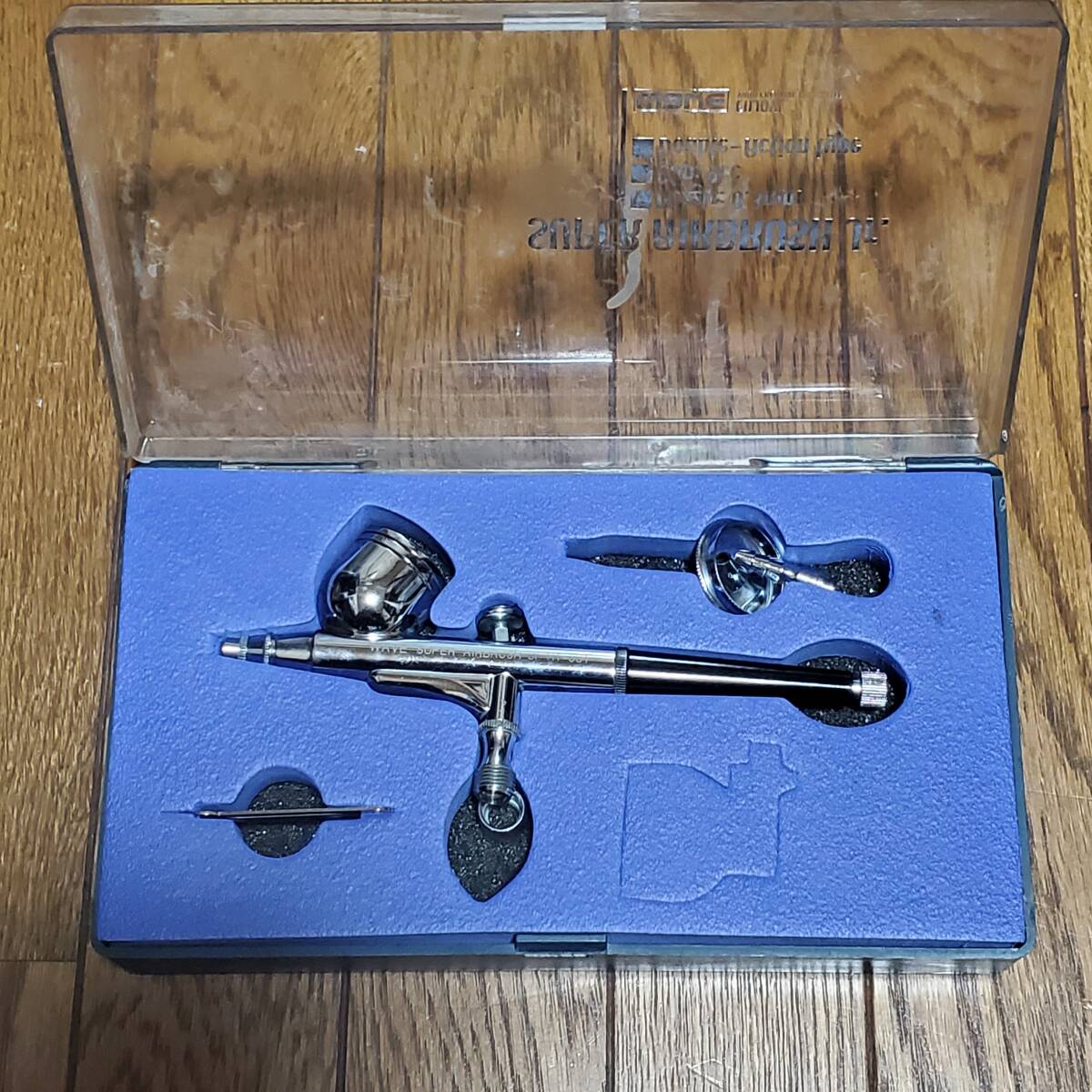 古いものです。ルアーの塗装などに使っていました。コンプレッサー稼働しました。購入時からですが構造上スイッチを入れても稼働しない時があるます。ピストンが相殺運動するようです。何回かスイッチを入れれば稼働します。、エアブラシも古いものです。針に汚れはありますが曲がりはないようです。エアの量は調整できます。。取付用チューブはありません。古いものなのでどこまで使えるかは保証できません。ご理解の上ご入札よろしくお願いいたします。