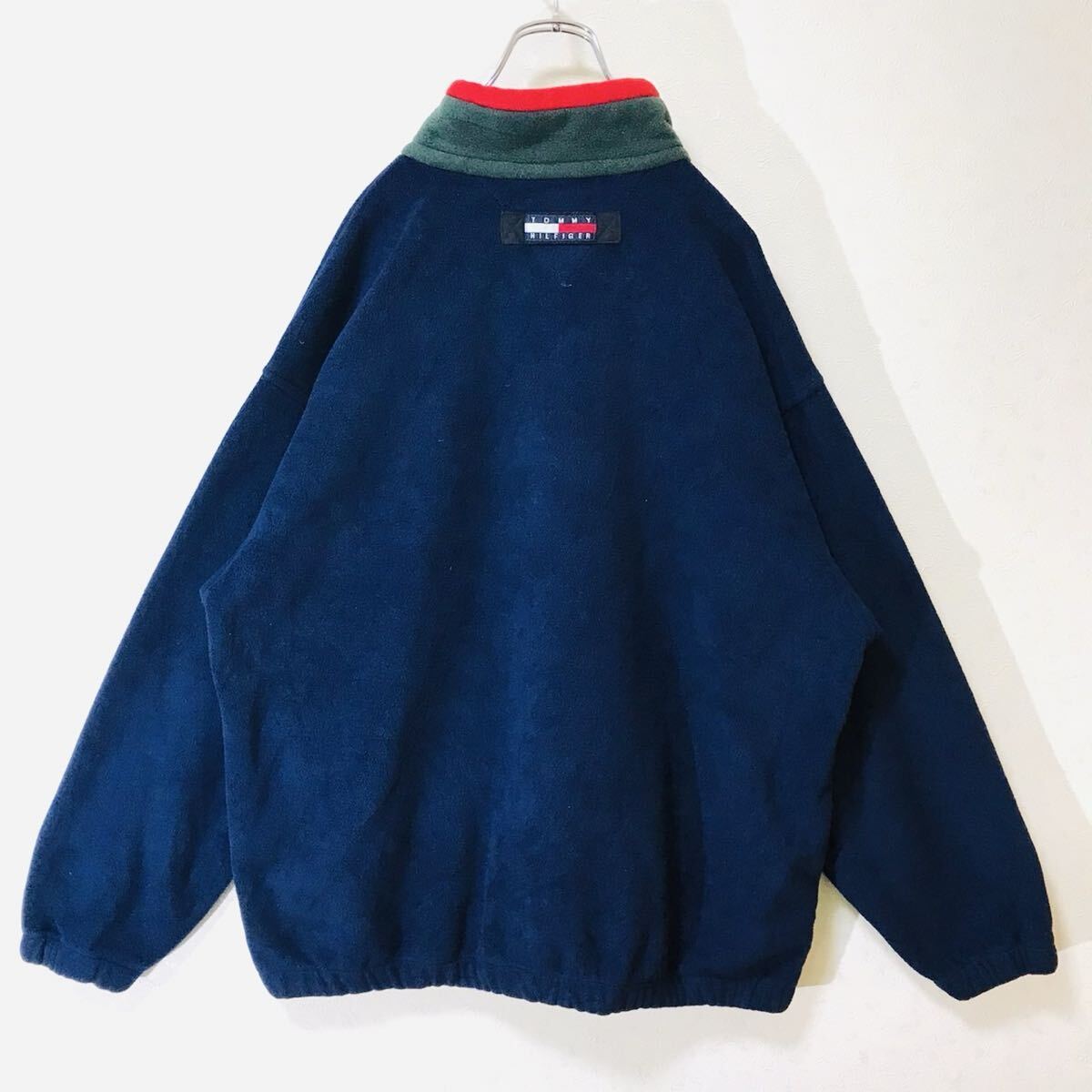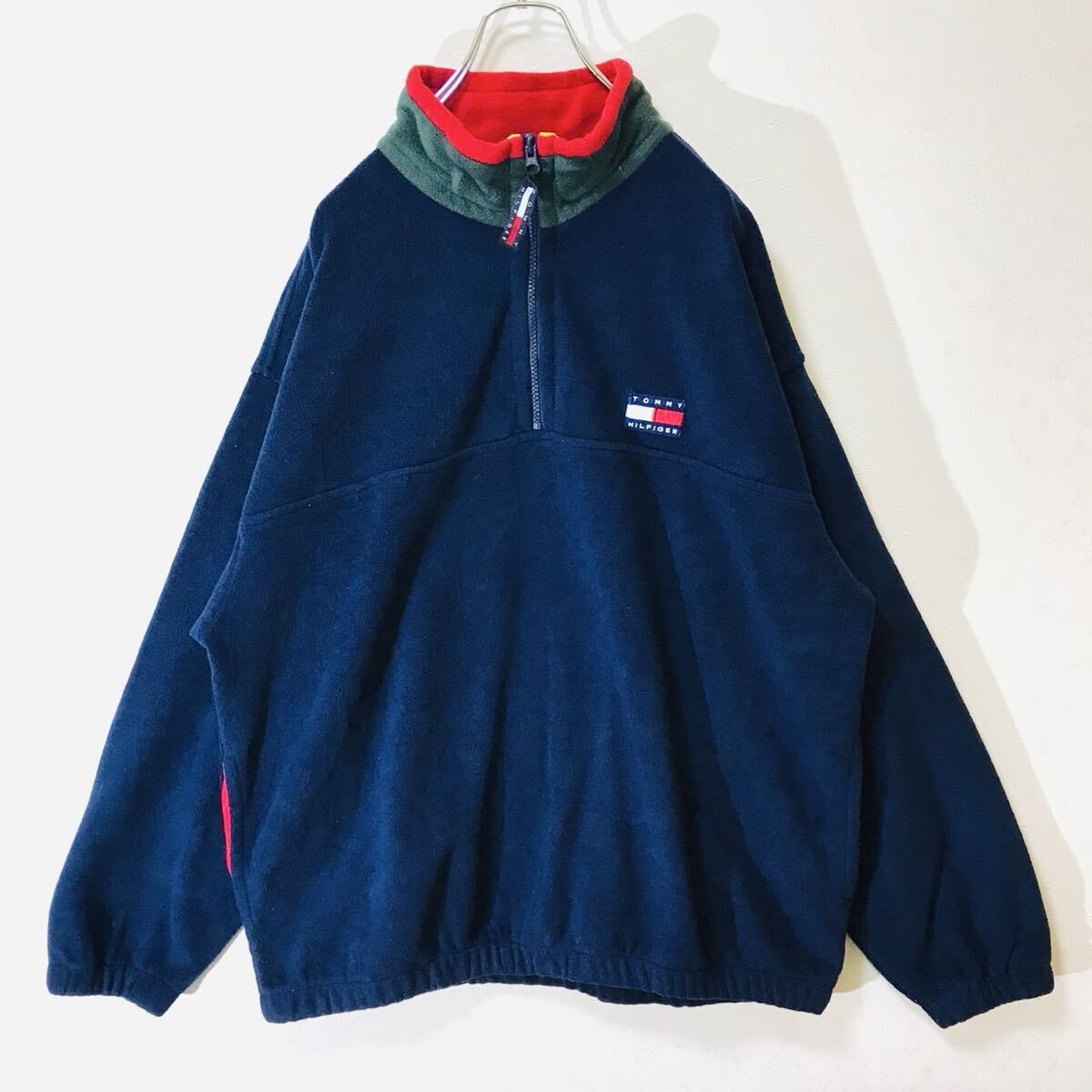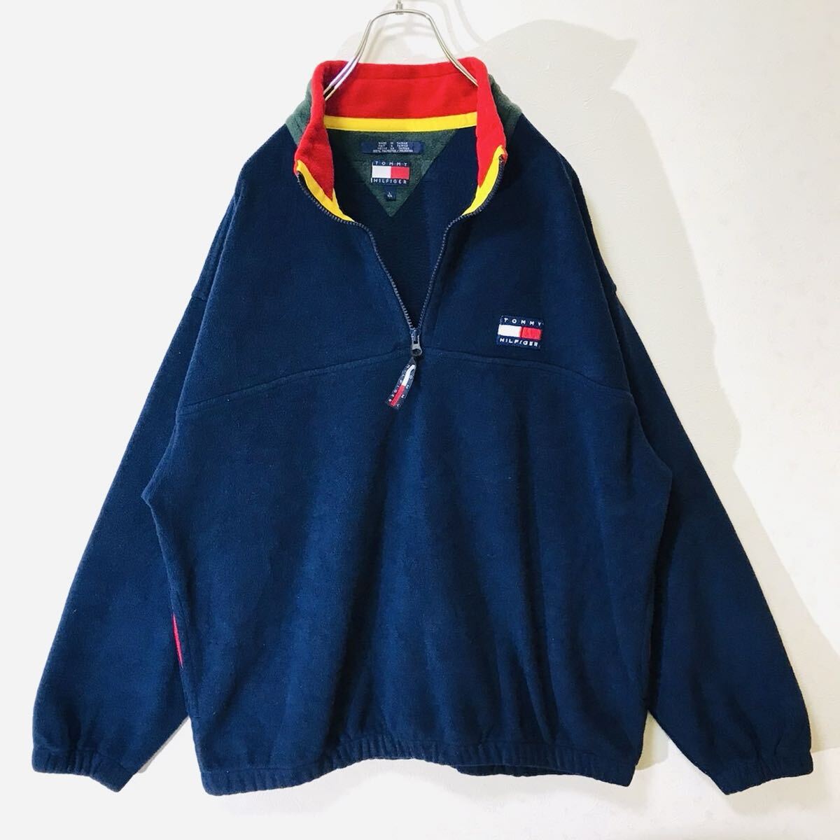 TOMMY HILFIGER トミーヒルフィガー フリース ハーフジップ L ネイビー 90s アーカイブ ストリート系 アメカジ ビッグシルエット 通年着用可 古着