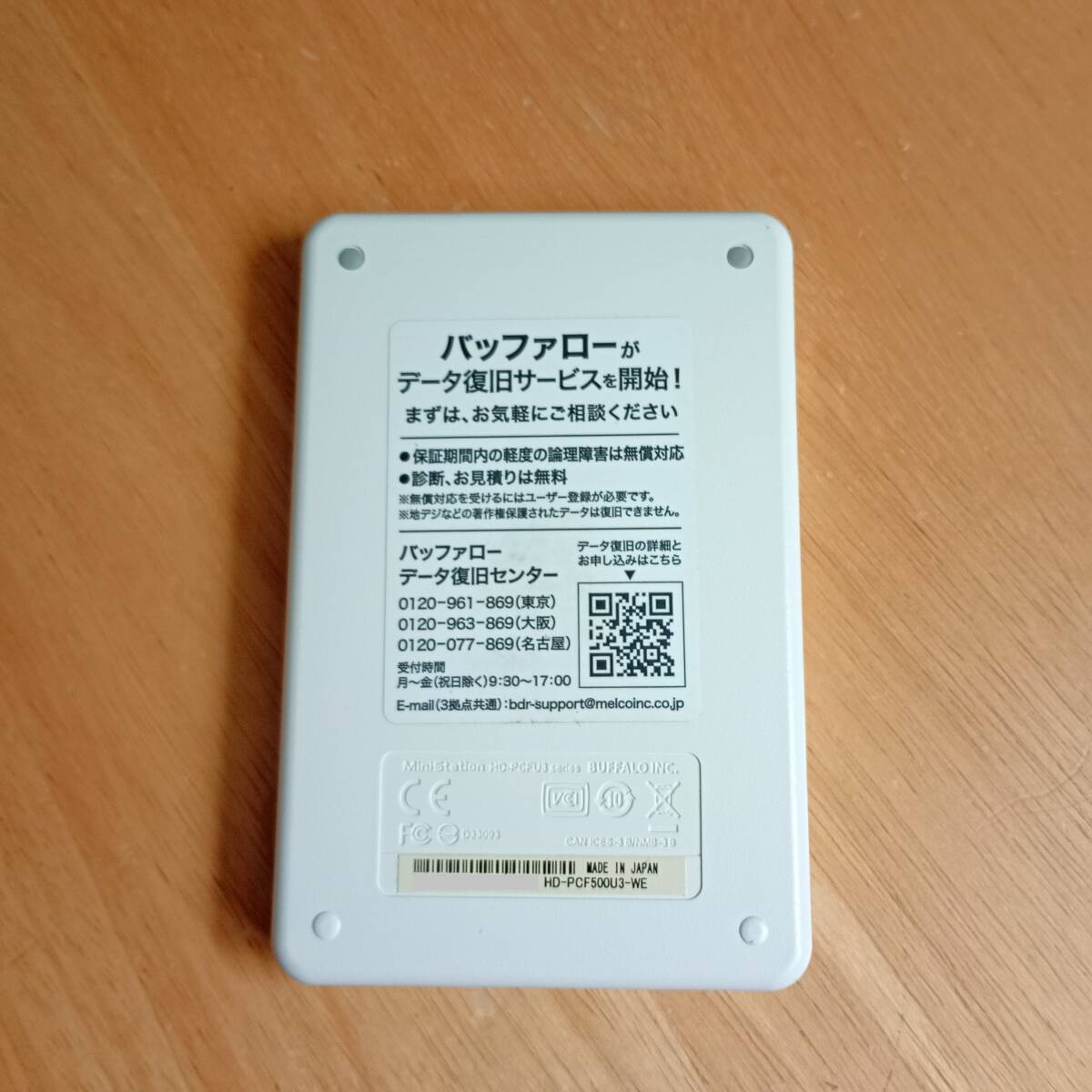 BUFFALO 2.5インチ (ポータブル) 外付けHDD 500GB ホワイト HD-PCF500U3-WE