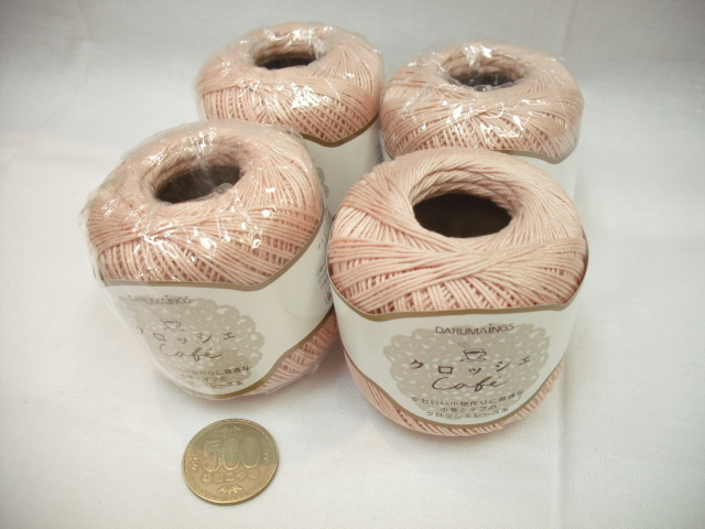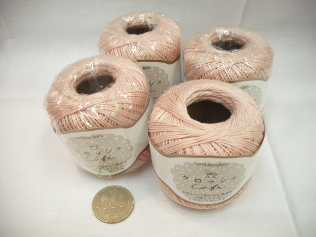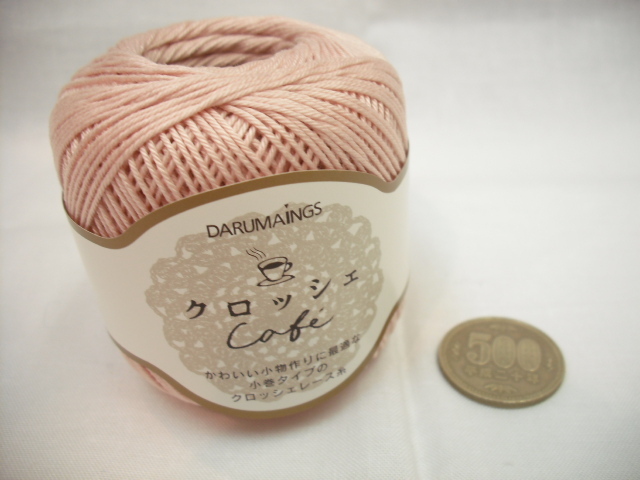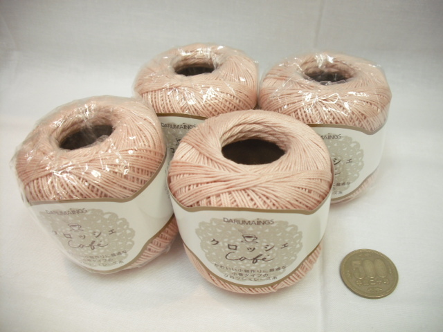 ☆クロッシェカフェ7☆ダルマ☆太番手レース糸☆薄ピンク4玉