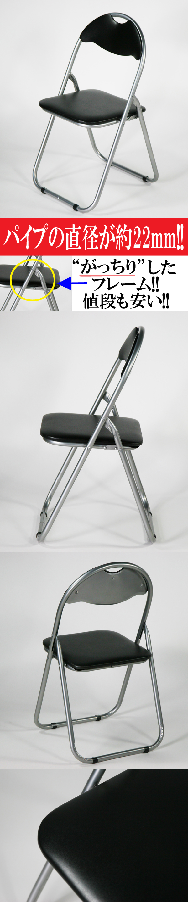 | 商品紹介 | 折りたたみパイプ椅子 ●会社のオフィスや学校の食堂、集会所、公会堂などさまざまな所で、大活躍の折りたたみパイプ椅子です。 ●折りたたむ事ができるので、収納にとっても便利です。 ≪材質≫ バックとシート…PVC フレーム…スチールチューブ ※あらかじめ、体が前のめりにならないように座面を斜めにして設計致しております。 ※こちらの商品は、5脚セットです。 ◎シートカラー…ブラック ◎こちらの製品は、完成品です。 |