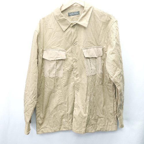 ◇ ⊇ nano universe ナノユニバース 長袖 ワークシャツ サイズM ベージュ メンズ E