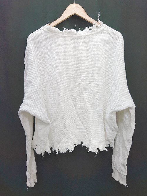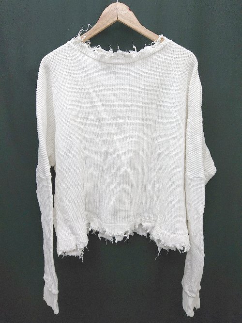 ◇ Everlast ビックシルエット 切りっぱなし シンプル 長袖 Tシャツ カットソー サイズF ホワイト レディース P