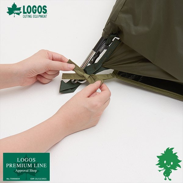 インナーテントが吊り下げ式の場合、インナーテント四隅のループに結んでください。