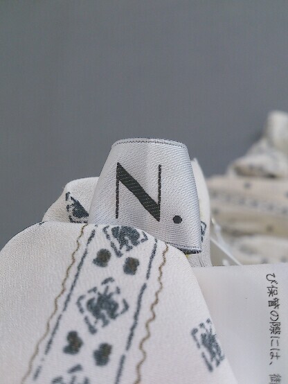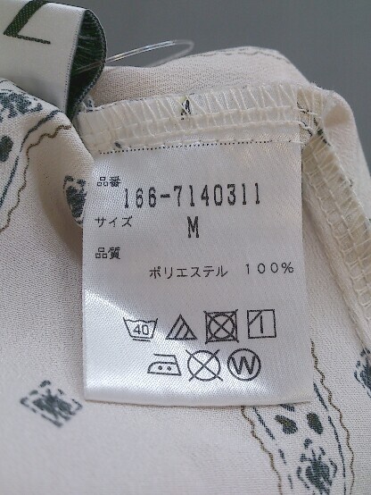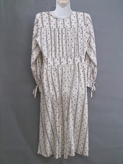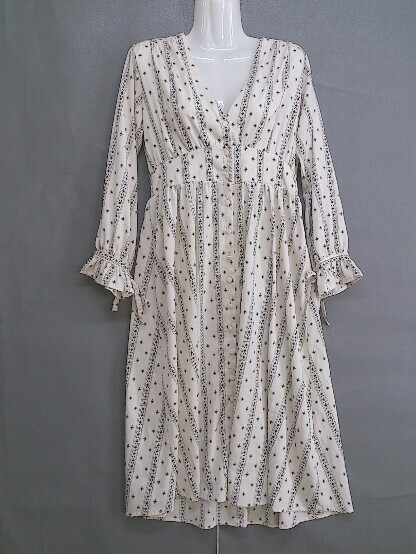 ◇ NATURAL BEAUTY BASIC 総柄 長袖 膝下丈 ワンピース サイズM オフホワイト ブラック レディース
