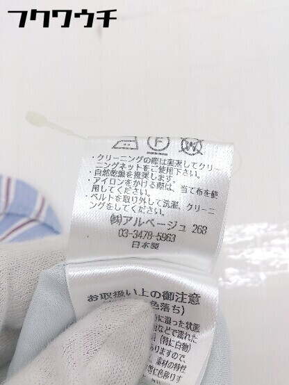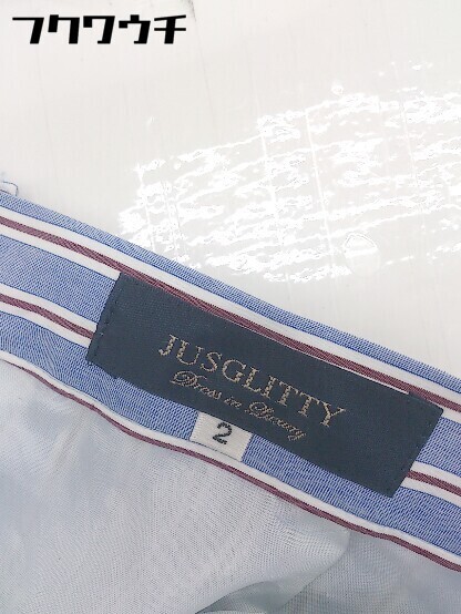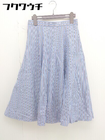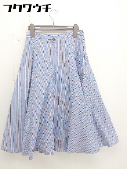 ◇ JUSGLITTY ジャスグリッティー ストライプ 膝下丈 フレア スカート サイズ2 ブルー バーガンディ ホワイト系 レディース