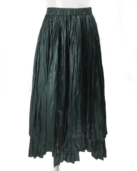 | コメント | 光沢のある深いグリーンのスカート。 裏地のすそが表地より長くオシャレなデザインと なっています。 きれい目大人女子スタイルが楽しめます。 |