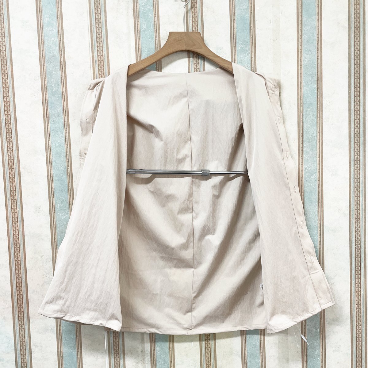 全体はシンプルなカラーとはっきりしたラインは、清潔感も加わって周りからの印象も良くなります。フロントのボタンが、大人っぽくエレガントな雰囲気を味わえる。シンプルな無地シャツは他とのコーディネートを合わせやすいのがメリットです。