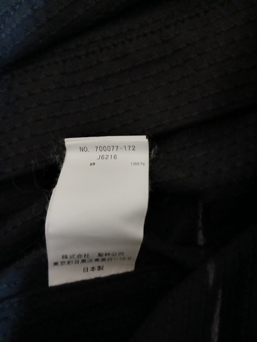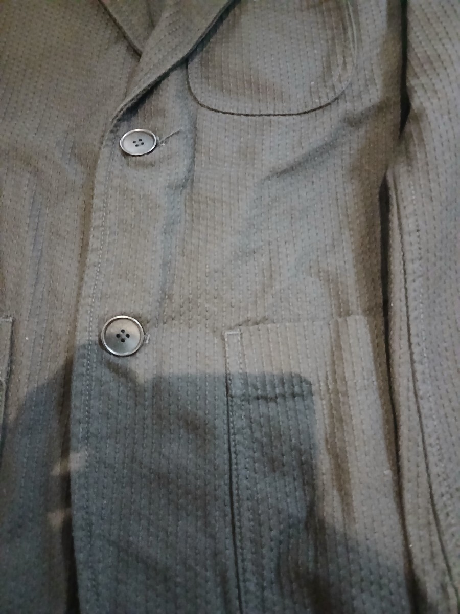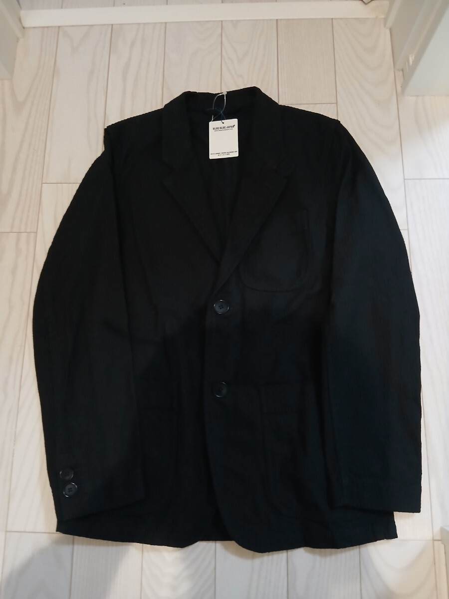 ブルーブルージャパンの型押しの厚手コットンのブラックテーラードジャケット、タグ付き新品です。サイズ表記がなく175cm65キロの私が着用するつもりで購入しました。