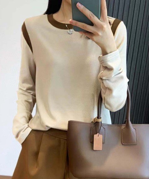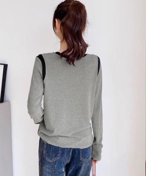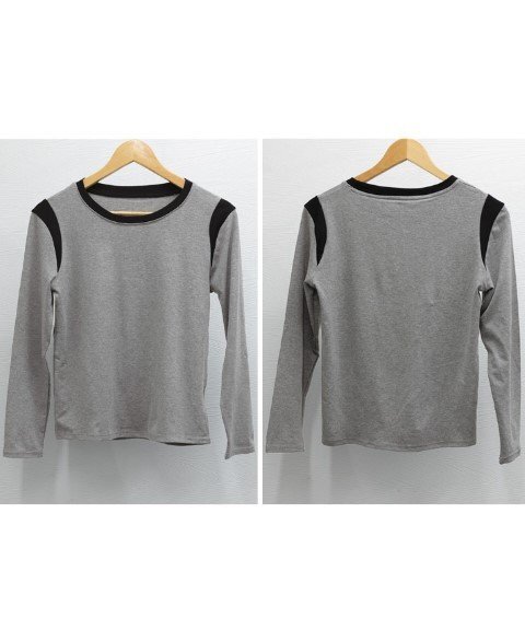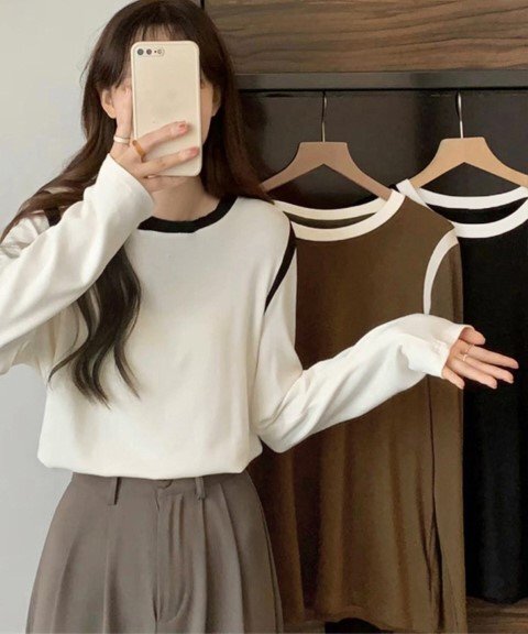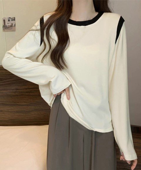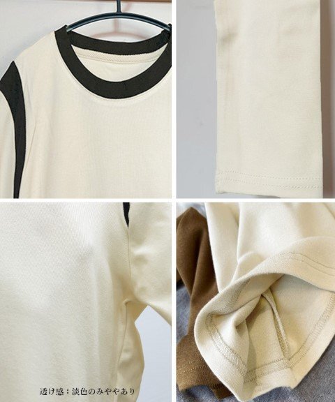 バイカラーの配色がお洒落ポイントを作るTシャツです。