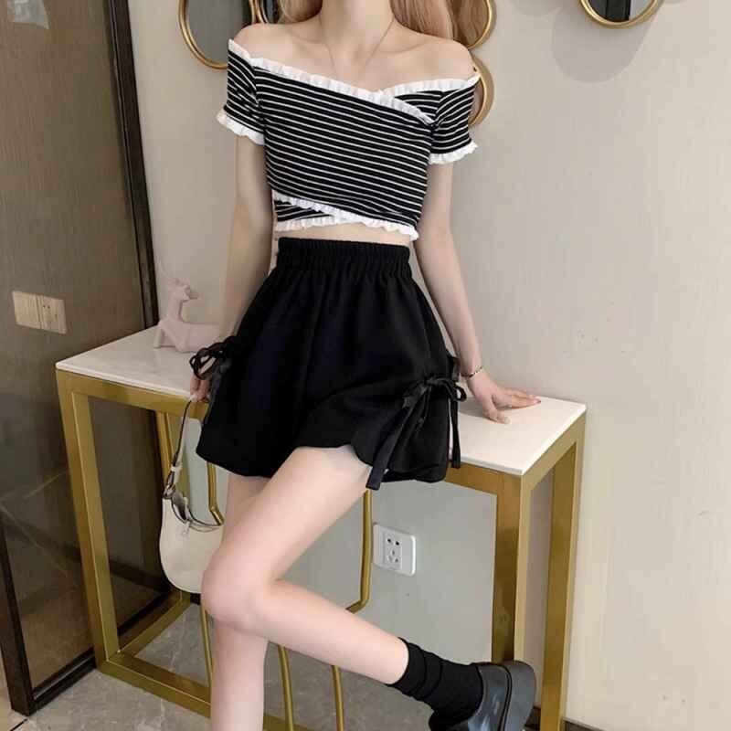 [L]着丈:約35cm 股下:約8cm ウエスト(ゴム仕様):約50-86cm ヒップ:約108cm もも周り:約62cm