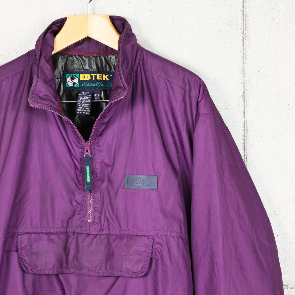 【ブランド】 Eddie Bauer / エディーバウアー 【アイテム】 EBTEK ハーフジップ ナイロンジャケット 【商品説明】 アメリカで購入しました、エディーバウアーのEBTEKシリーズの中綿入りのハーフジップタイプのナイロンジャケットになります。 【カラー】 パープル 【コンディション】 使用に伴う色落ちや擦れなどがあります。 【サイズ】 サイズ:L 身幅:69cm 肩幅:57cm 着丈:70cm 袖丈:64cm |
