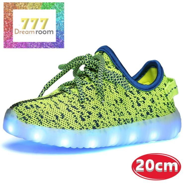 kids 7色に光る☆LED ライトアップ MIXツイードスニーカー 靴紐type 【グリーン 20cm】 韓国子供服 キッズ シューズ 子供用 男女