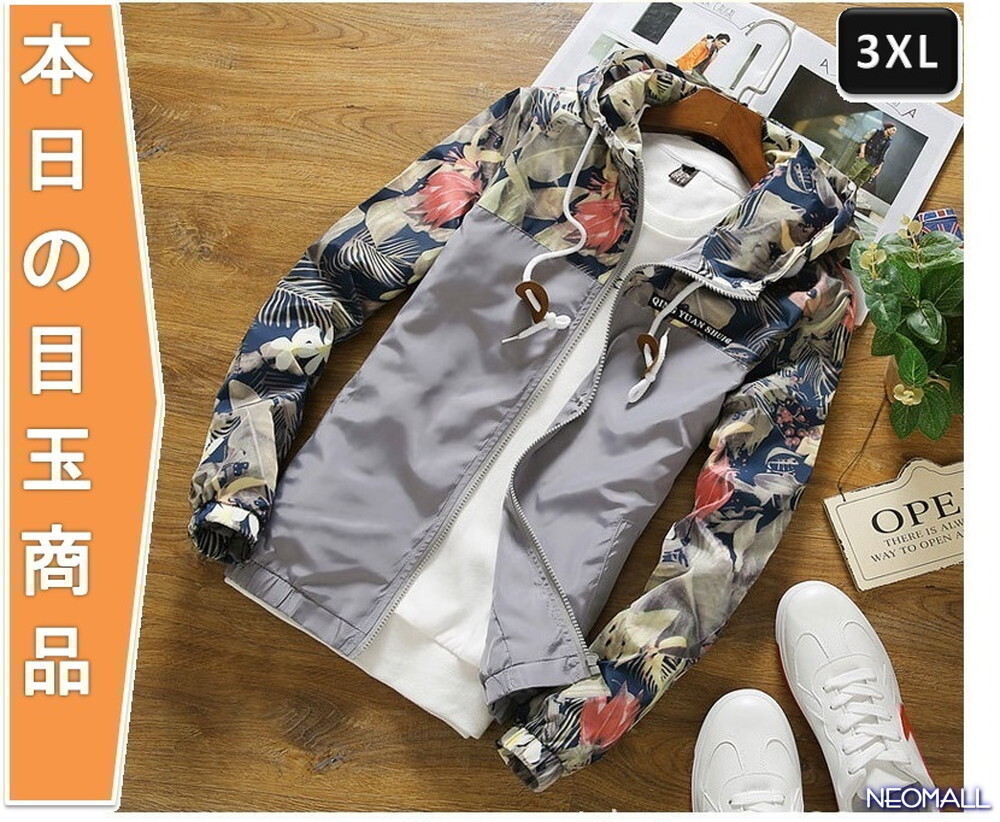 本日の目玉 【297】 ウィンドブレーカー フード付き グレー 3XL メンズ ナイロン カモフラ 柄 アウトドア 防風 軽量 ジャケット